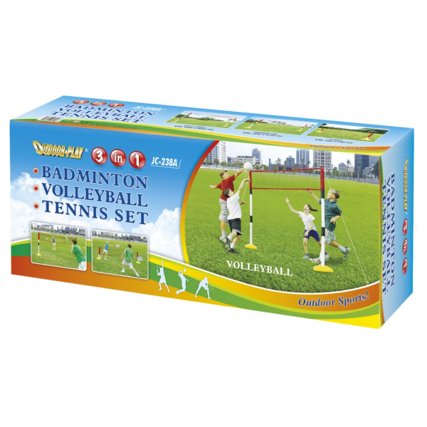 Outdoor-Play JS-238A - відмінний спортивний набір для всієї родини, який включає все необхідне для гри в бадмінтон, волейбол і теніс.