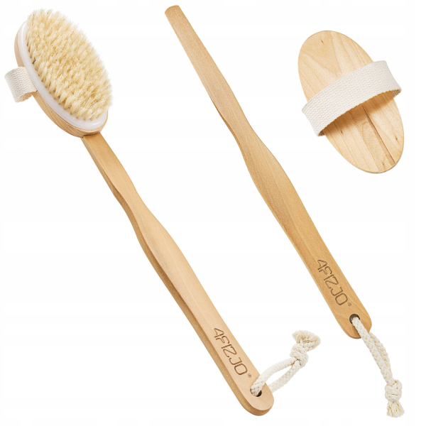 Щітка для сухого масажу та ванн 2 в 1 від польського бренду 4FIZJO - це продукт найвищої якості з натуральних матеріалів, що дозволяє виконувати брашування тіла. Ця проста процедура не тільки покращує стан шкіри, але й сприяє виведенню токсинів з організму та покращенню самопочуття. Найбільш важливі ефекти від використання: відлущування омертвілої шкіри (натуральний пілінг), розгладжування та зміцнення шкіри, поліпшення її кольору, зменшення видимості целюліту, очищення пор, підготовка шкіри до подальших косметичних процедур, стимуляція крово- та лімфообігу, а також ефект бадьорості та розслаблення. При регулярному використанні перші результати у вигляді більш пружної та гладкої шкіри буде видно вже через 1-2 тижні. Для виконання масажу щіткою не потрібні жодні додаткові косметичні засоби чи пристосування - потрібна лише щітка, якою необхідно ретельно масажувати та стимулювати тіло.