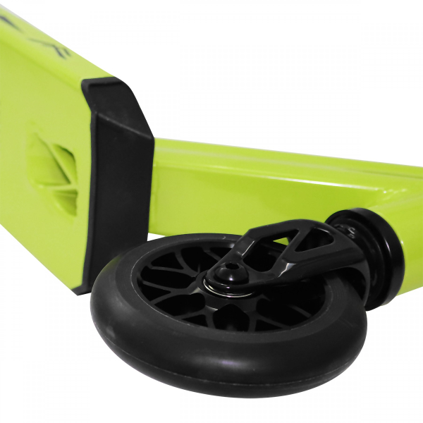 Каждый элемент в данном самокате говорит о его агрессивном характере и готовности к экстремальным поездкам! Стальная вилка с усиленным рулем сопряжена с легкой алюминиевой декой. Полиуретановые колеса диаметром 110 мм в паре с высокоскоростными подшипниками ABEC 9 обеспечивают хорошую плавность хода. Заднее колесо оборудовано стальным тормозом Flex Fender.